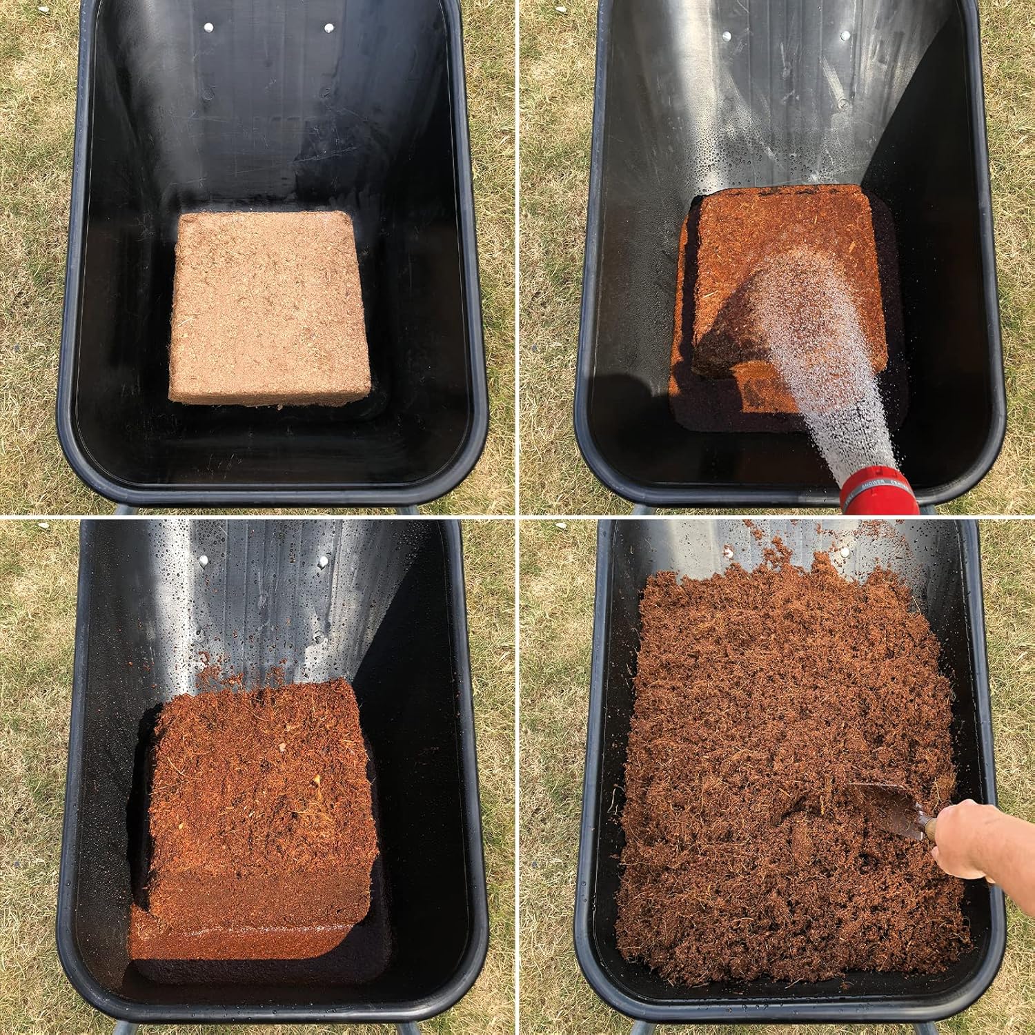 - Hydrate the Blocks: Start by soaking the compressed blocks in water for a few hours. They will expand significantly, turning into a fluffy, soil-like texture.