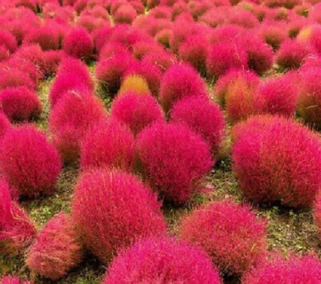 Burning Bush (Kochia Trichophylla) - This feathery bush is pale green in the summer, but then transforms to an intense red in the autumn. Kochia Trichophylla Burning Bush is symmetrical and oval in form and makes an outstanding foliage plant. The Kochia bush is truly one of a kind and brings a great addition to the flower garden. It reaches 28 inches in height and looks great when grown as a hedge along the border or in groups of 3 for focal interest.